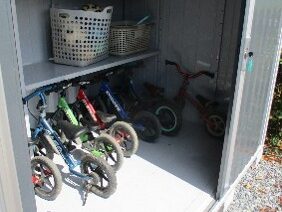 本事業により、しっかりとした遊具収納庫を設置でき、遊具が安全に取り出しできるようになりました。子どもたちは収納されている遊具を見て、遊びたいものを選び元気いっぱい遊んでおります。